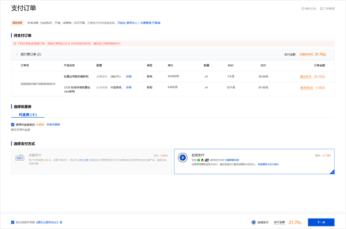 然后回到我们刚才腾讯云的购买页。