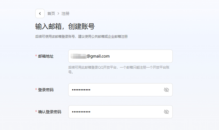 点击注册,创建一个QQ开放平台账号。
