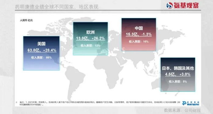 第二,高增长并不是单一市场带动,而是全球多个市场“合力”共振的结果。根据药明康德一季报,大部分国家、地区的收入都在保持着增长,其中全球重点市场的增长会更强劲,比如美国营收增长超过28.4%,在欧洲增长超过26.2%,与亚太区的日韩及其他国家形成全球增长“合力”,也恰恰说明了其统治力。