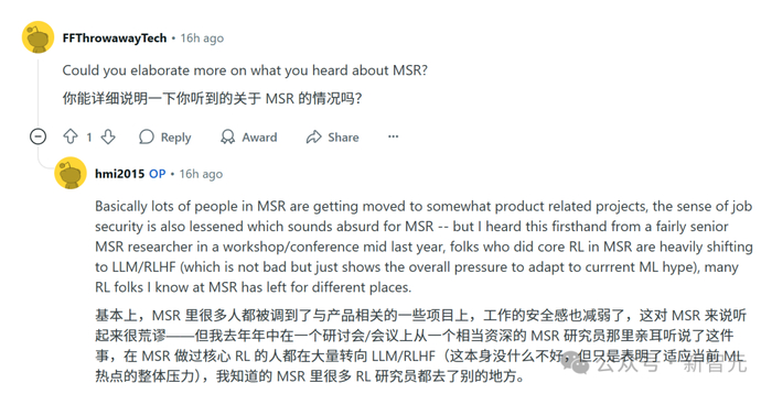 很多做核心RL的人,现在都大量转向了LLM/RLHF这些热门。也有很多RL研究员,直接离职了。
