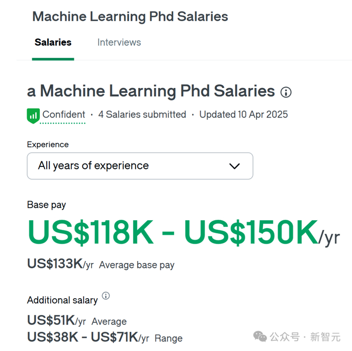 Glassdoor上的ML博士基础薪酬,在11.8万到15万刀之间。
