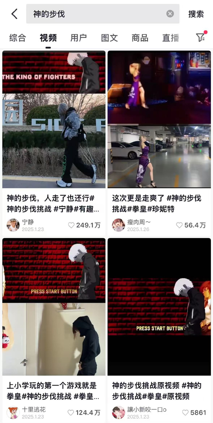 就在今年年初,经典格斗游戏《拳皇2000》的片头动画掀起短视频潮流,超前的美术风格和角色设计迎来全网模仿。不管来自二次元还是三次元,听着DJ版《半点心》都得把目光锁死地板,走出六亲不认的“神的步伐”。