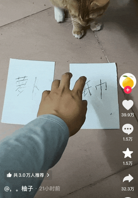 在主人抖音账号主页能看到开门从零训练的全过程。最初的训练指令是“纸巾”,不过任凭主人重复“纸巾”数遍,那只小猫爪愣是次次停留在鼠标上。