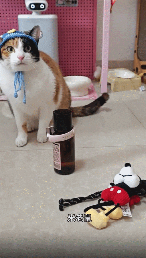然而在主人将米老鼠玩偶挪走并再次发出相同指令后,让人憋不住笑的一幕出现了,只见开门毫不犹豫地将小爪子一伸,直接原地稍息。上学时老师教的“不会做也不能空着”,竟然让一只猫听进去了。