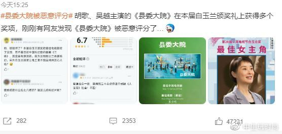 最近,胡歌、吴越主演的电视剧《县委大院》在本届白玉兰颁奖礼上获得了多个奖项,成为了当之无愧的焦点。然而,让人不解的是,有网友发现《县委大院》被恶意评分了。