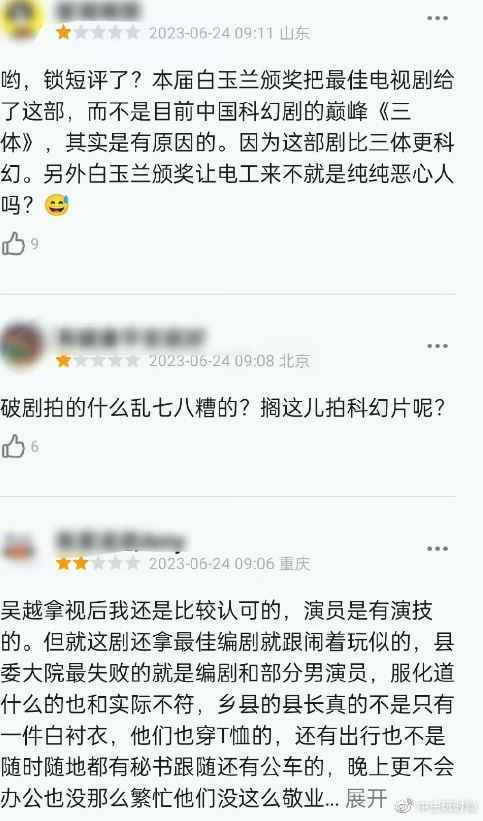 然而,就在电视剧收官之际,有人恶意评分,对《县委大院》进行了低分打压。这种行为不仅不公平,也无法代表真实的评价,更是对电视剧及其演员的不尊重。