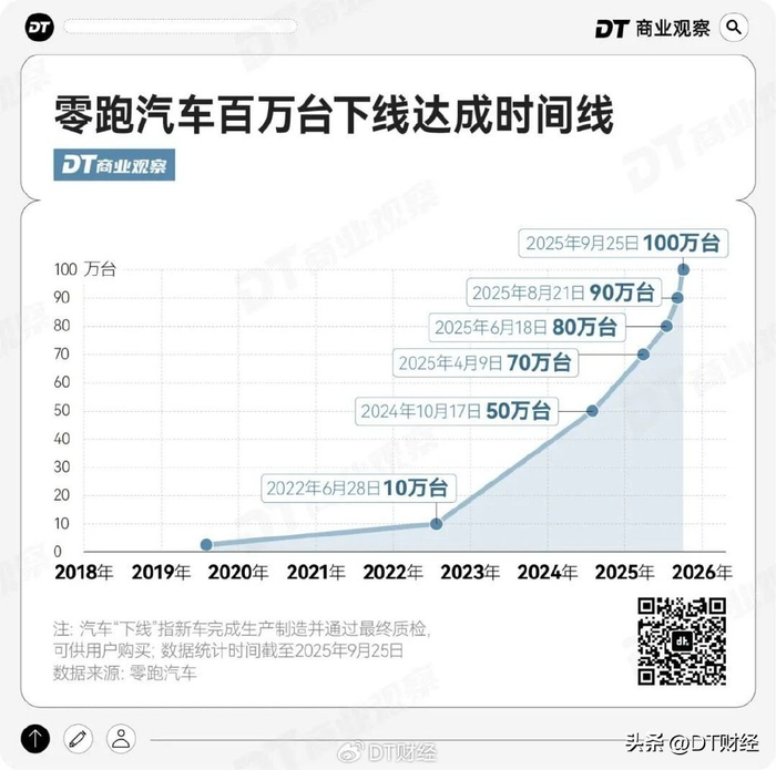 另一方面,速度则是“品质复利”的证明,从50万台到100万台,零跑仅用了343天,成为国内第二家达成百万规模的新势力车企,打造出罕见的“零跑现象”。