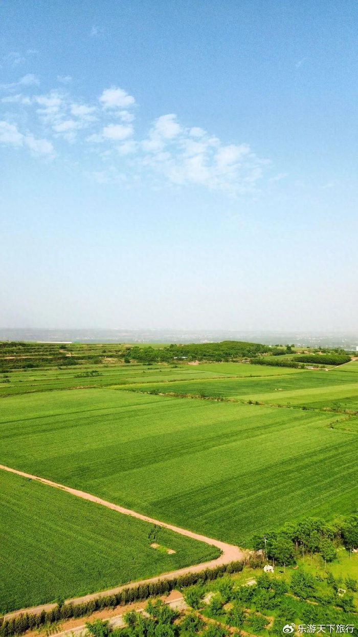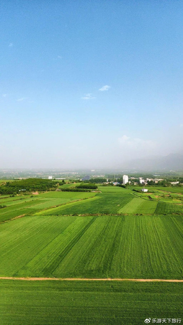 最美的莫过于,每当微风吹过,青绿色的麦浪开始飘荡起伏,在巍峨的秦岭山和蓝色天空映衬下,充满生机,又充满诗意,简直是太治愈的风景。