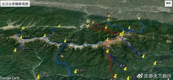 以往太白山穿越路线主要分为南南和南北两条线,都是通过太白山顶的高山区域,然后到达不同的目的地。