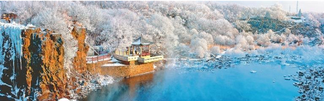 清晨,镜泊湖湖畔的树木常挂满晶莹的雾凇,宛如琼枝玉叶。景区内会建造 冰雪乐园或雪堡,有冰滑梯、雪雕、冰屋等,夜晚灯光亮起,如同童话世界。