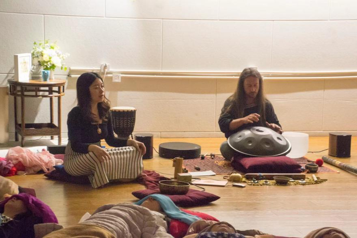 (陈芳谊与知名音乐疗愈师约翰杜马斯一同带领疗愈工作坊)“原来内心的世界,它可以很狭隘,但它也可以很宽阔,甚至是无边无际,只要我愿意走出去。”