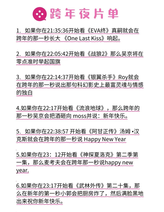 连不是院线电影的五月天线上跨年演唱会,也有举办影院跨年活动的,还有影迷会自制跨年夜片单,说明仪式感是跨年的某种刚需。