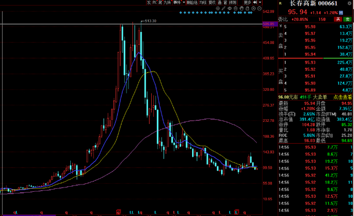 2025年5月以来,长春高新在新药获批、大股东回购以及赴港上市等一系列利好消息的刺激下迎来了一波强劲反弹。2025年10月13日,长春高新股价创出141.77元的阶段新高,较2025年4月的底部区间涨幅超过70%。然而,随后公布的财报数据却显示,2025年第三季度长春高新营收再次出现缩水,净利润降幅更是超过80%。此后,长春高新股价开始加速回落,几乎回到了2025年5月份的起涨点。