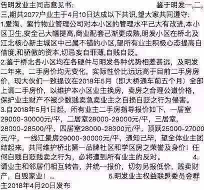 单从字面来看,一个小区配套日趋成熟,物业管理水平逐渐提高,卫生情况有很大改善,理论上房价上涨是应该的,但是这个房价上涨却不是根据市场反应,而潜移默化,被大家逐渐默认的,而是小区业主发布通知,要求全体业主,集体涨价。