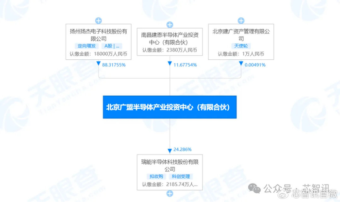 在最新的股权结构方面,目前瑞能半导仍为中资100%控股。其前三大股东南昌建恩、北京广盟、天津瑞芯分别持股约24.29%、24.29%、22.86%,均为私募基金;三者的执行事务合伙人均为建广资产或其关联方,使建广资产得以行使约71%表决权。