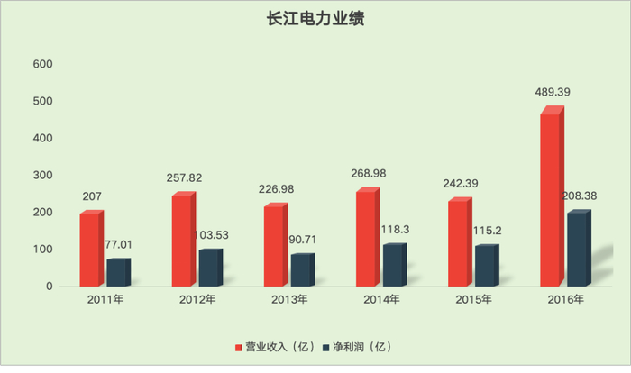 所以在2015年之前,长电的估值是没啥想象力的,而到了2016年,收购并表溪洛渡和向家坝电站后,收入直接翻倍至489亿,因为这两个电站的总发电量已经超过三峡的规模,所以长电的利润也暴增至209亿。