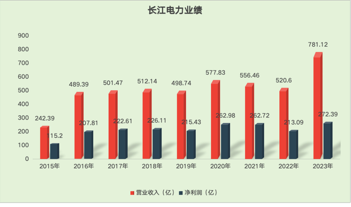 数据来源:IFind在2015年之前,长电的收入一直在200亿-260区间波动,这期间的利润也一是在百亿左右,彼时旗下并表的电站只有三峡和葛洲坝,总发电量约1050亿千瓦时。