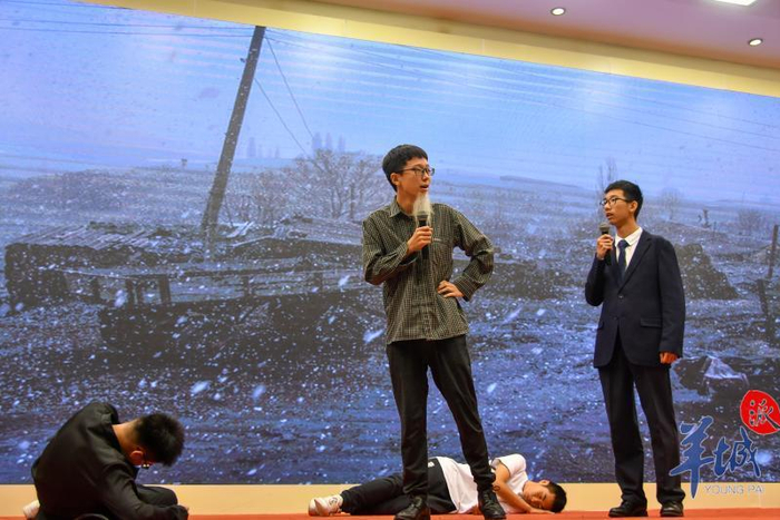 在主题展示环节,同学们用反串形式演绎出性别平等的重要性;复现1967年第三次中东战争战前紧张局势、纳卡地区的争斗使得当地人民流离失所、伤亡无数的画面;主新闻中心以笔为武器,展现对引导舆论走向的重要作用。