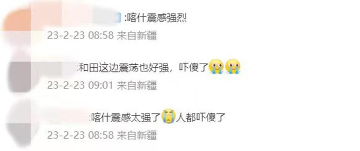 新疆网友表示震感强烈(网络截图)禤乐钰告诉记者,新疆时常有震级不高的小地震,大家都习以为常,只是这次震感相对强烈。她暂未听说有人员财产受损情况,目前在单位正常工作,大家生活一切照旧。
