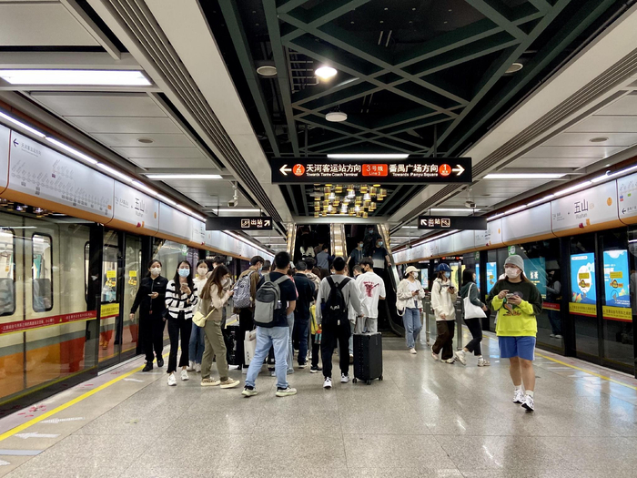 羊城晚报全媒体记者2月23日从广州地铁获悉,2月21日起,三号线(含三号线北延线)在工作日高峰期增加投放一列新车上线运行,上线列车达65列,进一步提升了线路高峰期的客流运输能力。近期,广州地铁客流明显回升,春运后的工作日日均客流为911万人次,已超过2019年905.7万人次的日均客流水平,大客流线路及车站恢复常态化客流管控。