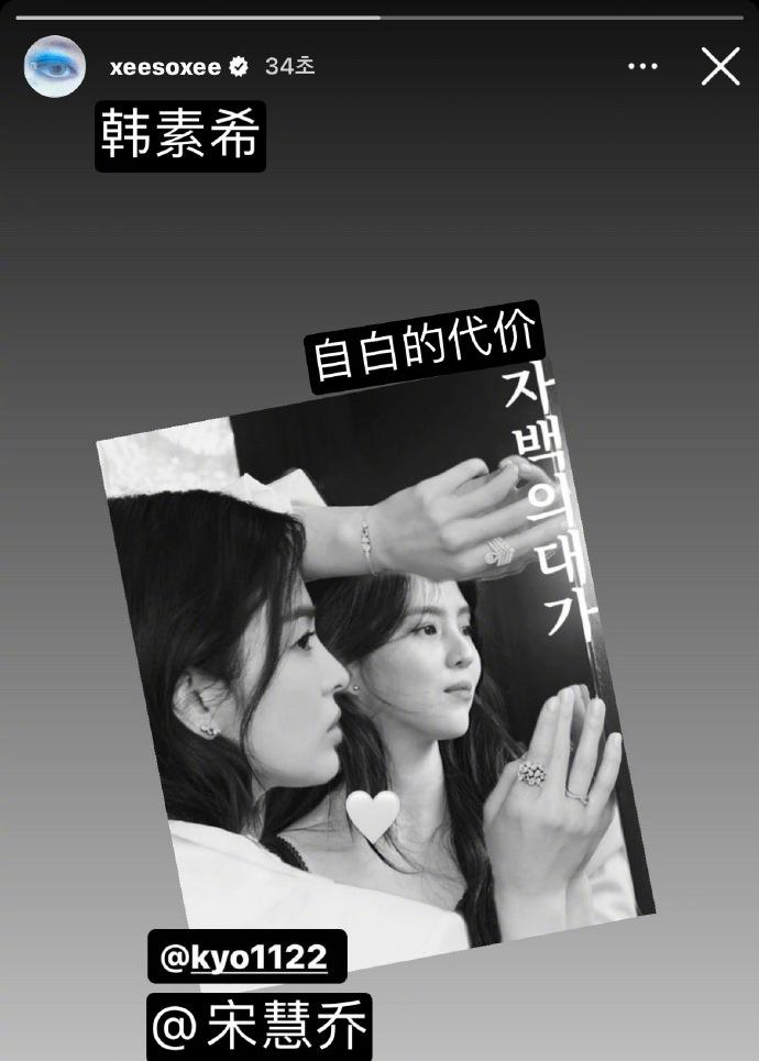 近日,韩素希社交平台晒照官宣下部戏和宋慧乔合作《自白的代价》,宋慧乔转发动态还回复了韩素希一个爱心。随后,韩素希又评论道:“你现在是我的了。”俏皮的留言引发了粉丝们的爆笑。
