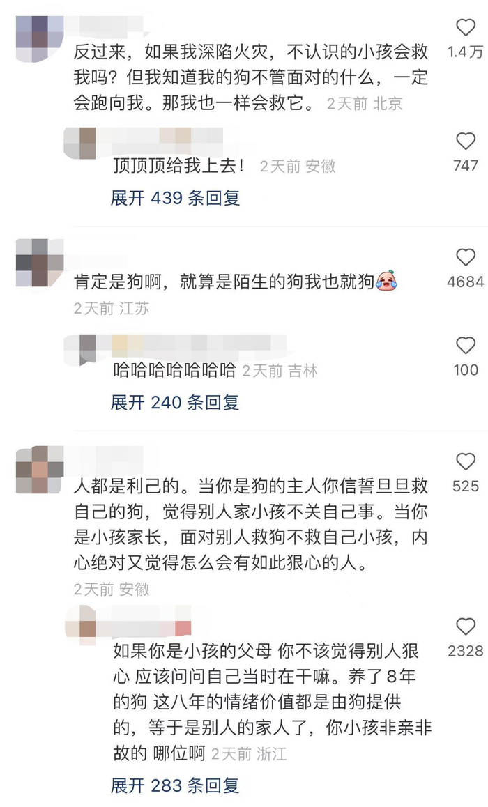 早在2017年,知乎上就有同样的讨论。似乎每隔一段时间,互联网上总会出现让互联网民陷入道德两难境地的抉择。单凭一条帖子的投票结果,远远不能代表大多数网民的想法。但值得推敲的是,这类问题出现的意义是什么?倘若真的在现实生活中发生火灾,选择救有着多年感情的宠物而不救陌生小朋友,可能会面临哪些法律风险?