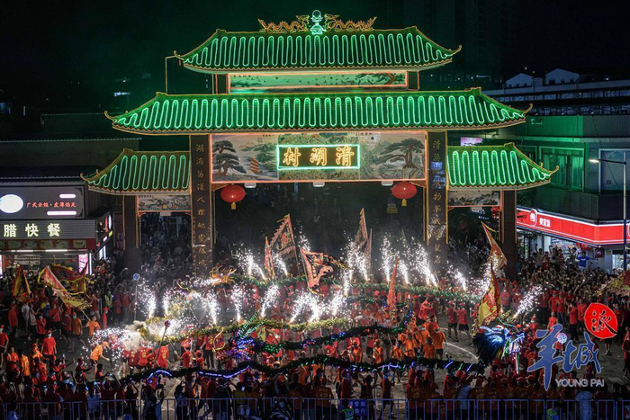 村民舞动着“火龙”在清湖村内巡游据悉,白云区舞火龙列入广东省第七批省级非物质文化遗产代表性项目名录。火龙追月,百年不灭,这是白云人多年坚守的初衷,也是传承的硕果。村民们通过舞火龙,庆祝中秋佳节,祈祷风调雨顺、国泰民安、五谷丰登,寄托着最朴素的愿望。