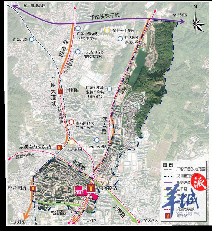 京溪广智项目位于白云区京溪街,改造范围东至沙河涌、西至京苑路、南至华苑街、北临京溪村。项目规划总用地面积约7.3公顷,总计容建筑面积约20.4万平方米。