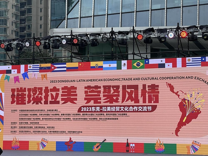 12月9日,由东莞市贸促会、东城街道办事处以及古巴、巴拿马、秘鲁、墨西哥、智利、巴西、委内瑞拉、乌拉圭驻广州总领事馆,哥伦比亚贸易投资旅游局联合举办的2023东莞—拉美经贸文化合作交流节在东莞开幕。