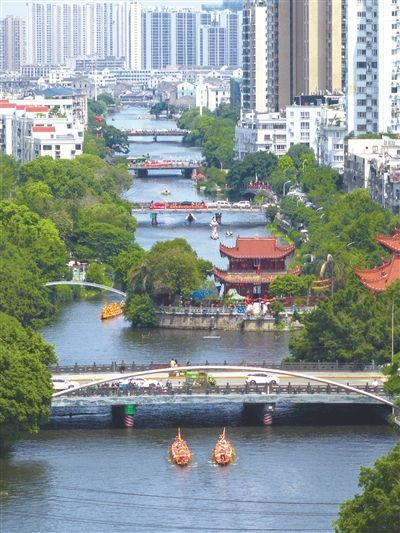 瑞安,东门古渡前的塘河上,龙舟划过。龙舟竞渡的热闹程度堪比春节