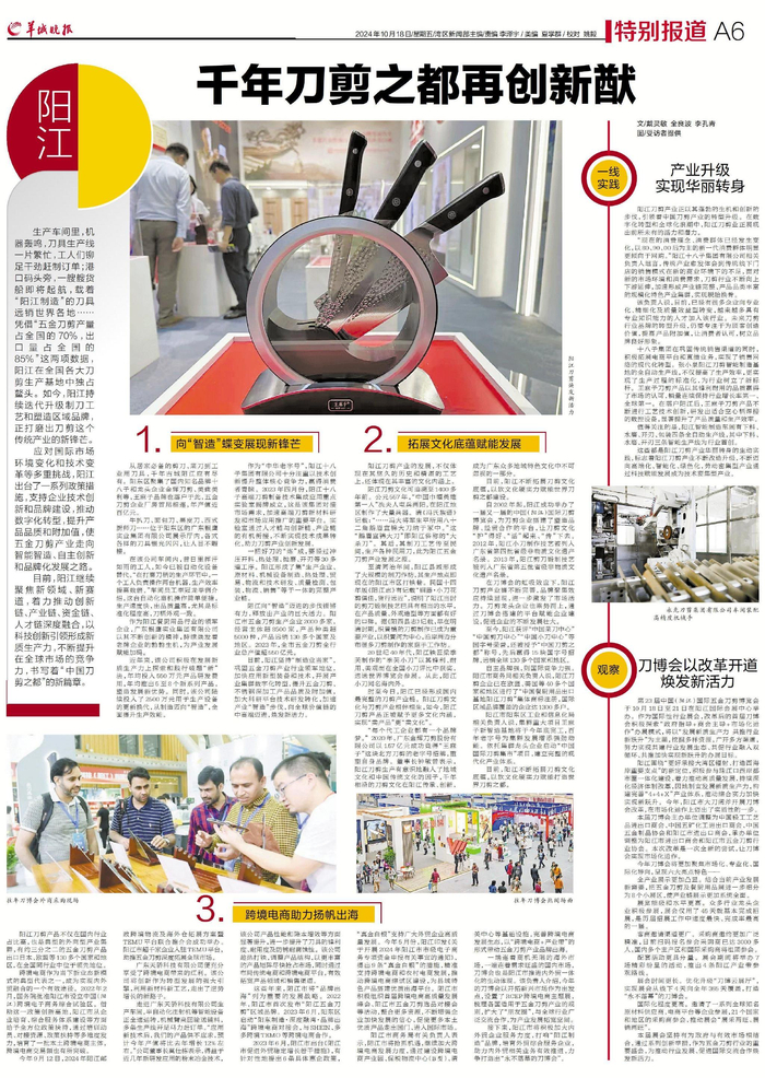 目前,阳江不断拓展刀剪文化底蕴,以软文化硬实力赋能打造世界刀剪之都。