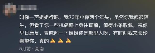 “虽然我们是陌生人,但看了你在抗癌路上勇往直前,值得敬佩!”