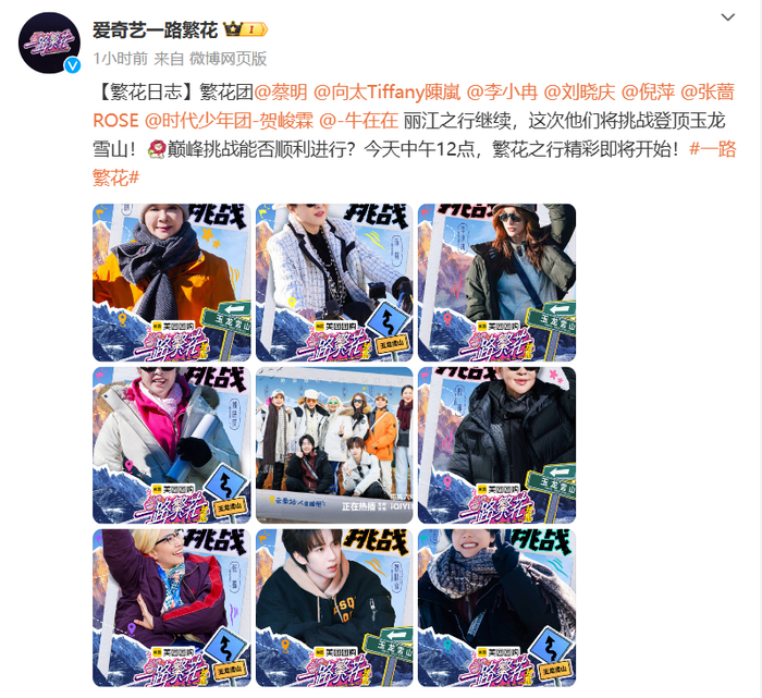 据爱奇艺消息,2月1日中午12点《一路繁花》节目继续播出,李小冉等人在节目中将挑战登顶玉龙雪山。