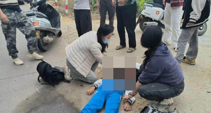 “快停车!有人受伤了!”事发当天17时10分,高州市人民医院五官科护士吴文婷姐妹与家人一起去探望病重的外婆。突然遇到群众拦车求助,两姐妹下车查看,只见一名学生仰面躺在地上,面色苍白,没有任何反应。