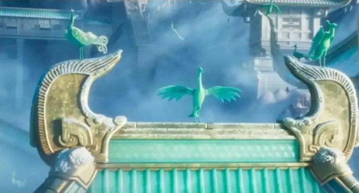 作为电影中阐教的最高权力机关,“玉虚宫”屋顶的鸱吻设计不仅融合了唐代鸱尾的浑厚与金代琉璃鸱吻的华丽,更暗含了中国古代建筑装饰的“神性”逻辑。