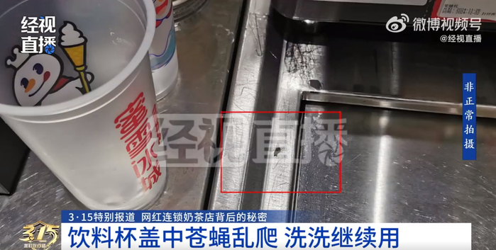 另外,门店的卫生状况也令人堪忧。记者拍摄的视频显示,店内有苍蝇飞虫,飞虫甚至出现在奶茶杯盖中。针对媒体曝光的问题,3月14日晚,记者拨打了蜜雪冰城客服热线反映情况。客服工作人员在接到反馈后表示,会将问题详细记录,并及时反馈。
