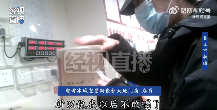 随后,记者又联系上蜜雪冰城宜昌凝聚新天地门店的店长邹先生。邹先生表示,视频中曝光的问题属于违规操作。“是他们店员在这里做的,我们要求都是用不完的直接就丢了的。”当记者追问,作为店长为何未能及时察觉门店存在的食品安全隐患时,店长称:“我不可能24小时盯着,我现在还要核实。”此外,邹先生告诉记者,后续会和公司进行沟通,也会加强门店的监管力度。
