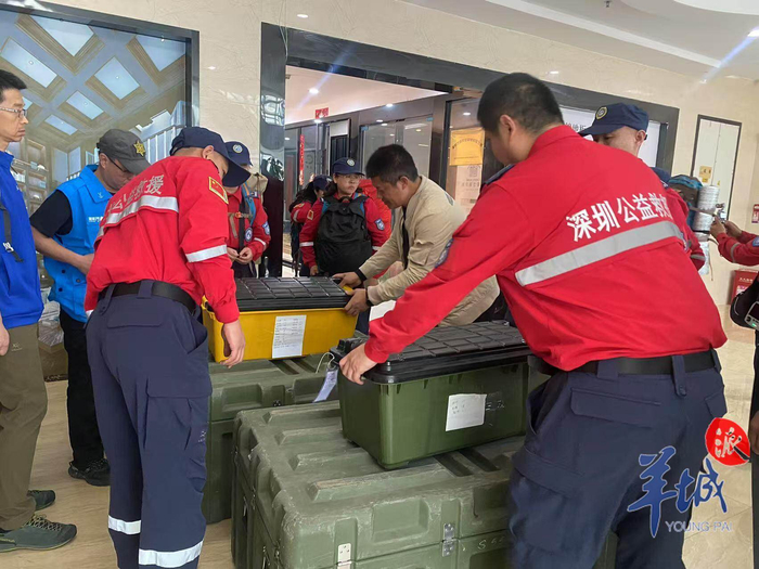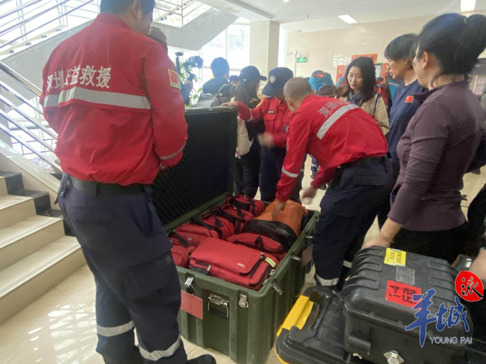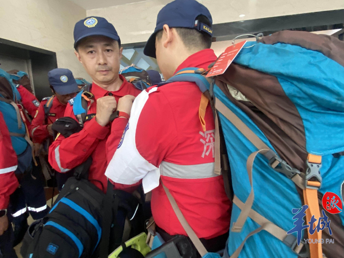 12时30分,羊城晚报记者抵达联合会现场看到,深圳出发人员正在秘书处集结,进行体检和装备清点。此次从深圳出发救援人员共有22人和1条搜救犬。