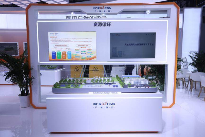 本届环保展,中广核环保以“科技赋能绿色发展”为主题,携等离子体+、电氧化+、气化+、风光储资源循环、智能危废系统等多项成果精彩亮相,多方位体现了中广核环保践行国家“双碳”战略目标,助力经济社会发展全面绿色转型的责任担当。值得一提的是,此次展出的“高效降碳风光资源循环利用系统”通过实体沙盘演示,生动还原了退役风光叶片及光伏组件资源化回收再利用全流程,吸引不少观众驻足关注。