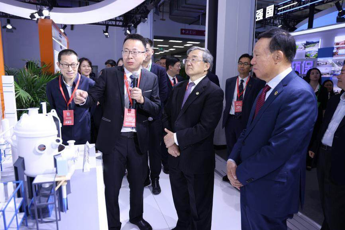 开幕式后,中国气候变化事务特使、联合国前副秘书长刘振民,中国环境保护产业协会党委书记、会长郭承站等嘉宾团来到中广核环保展台,听取并了解了中广核环保在核环保、资源循环、公用事业环保等领域的战略布局和最新发展成果。