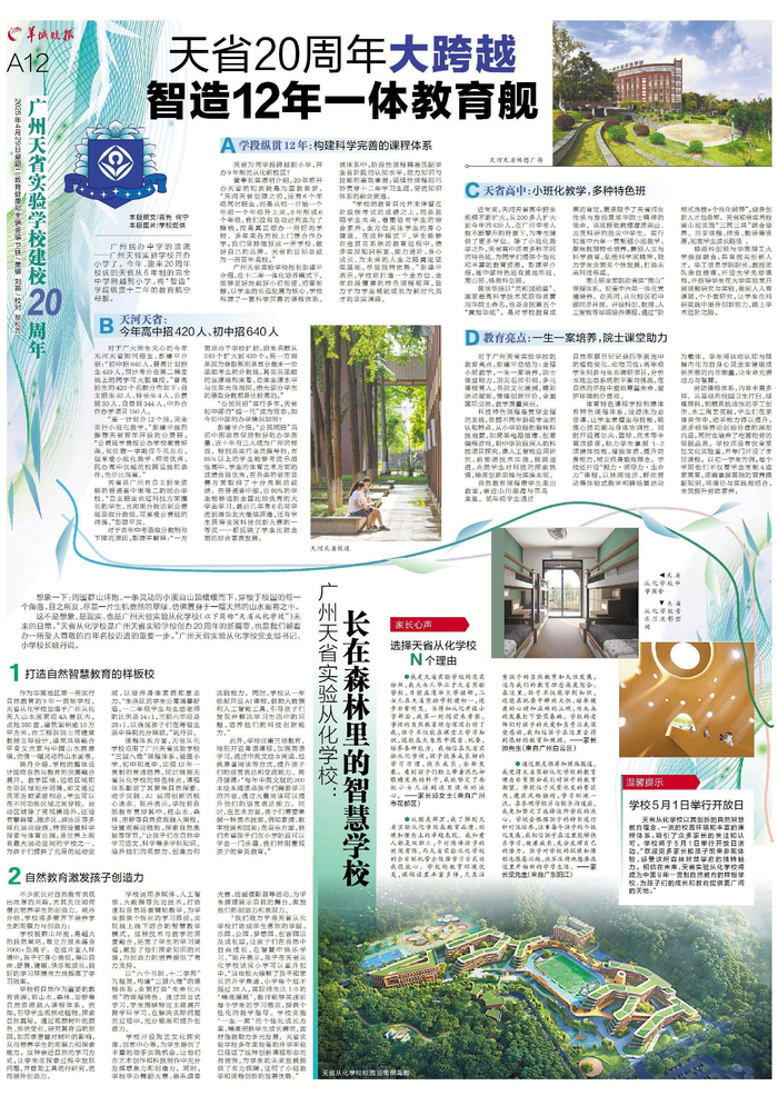 “我们致力于将天省从化学校打造成学生喜欢的学园、乐园、公园、梦想园、创客园以及成长园,让孩子们在自然中自由成长,在智慧中快乐学习。”姚丹表示,孩子在天省从化学校读完小学可以直升初中,“这也极大缓解了孩子和家长的升学焦虑,小学每个班不超过28人,实现师生比1:9的‘精准灌溉’,教师能够关注到每个学生的学习需求,提供个性化的教学指导。学校实施‘一生一案’的个性化成长方案、精准把脉学生成长需求,因材施教助力多元发展。天省实验学校多年来极高的升学率验已经证了这种创新课程形态的有效性,为学生的未来发展提供了有力保障,证明了小班教学和课程创新的显著优势。”