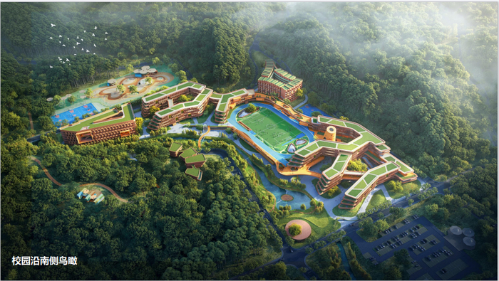作为华南地区第一所实行自然教育的9年一贯制学校,天省从化学校坐落于广州从化天人山水国家级4A景区内,占地380亩,建筑面积逾10万平方米,由工程院院士何镜堂教授主导设计,建筑风格融合甲骨文元素与中国山水画意境,仿佛一幅灵动的山水画卷。