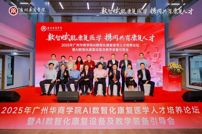 4月26日,2025年广州华商学院AI数智化康复医学人才培养论坛暨AI数智化康复设备及教学装备引导会在广州华商学院广州校区院士楼召开。