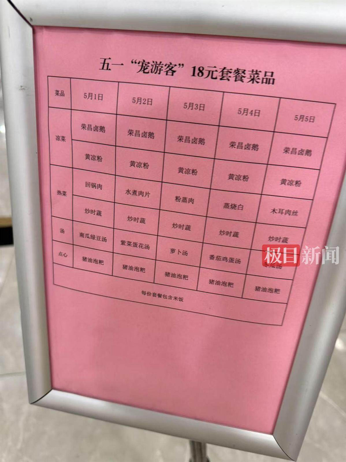 荣昌区政府食堂的套餐5月2日,记者在现场看到,不到上午11时,来食堂就餐的游客队伍就已排到门外。