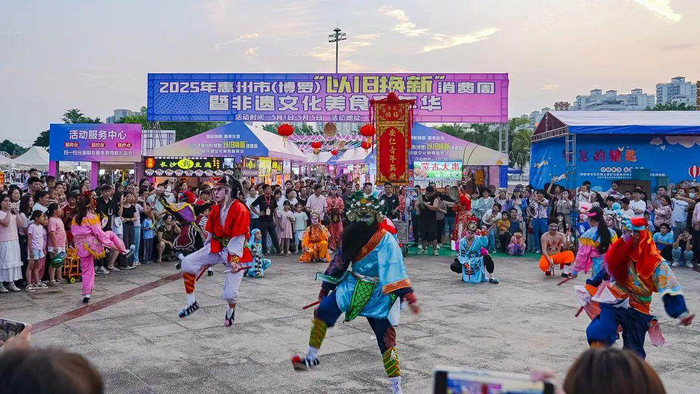 5月1日至5月5日,惠州博罗县在县城文化广场举办“智能焕新,惠享生活”2025年惠州市“以旧换新”消费周暨非遗美食嘉年华活动(以下简称“活动”)。据不完全统计,五天来,总接待游客超10万人次。