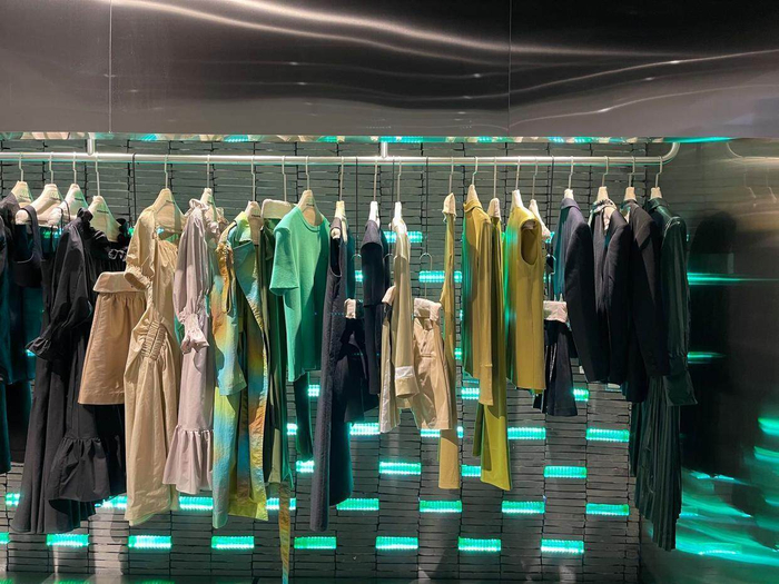 现在很多服装商,不是在卖衣服,而是在卖面料,像是面料商为了展示自己的面料,做一些简单的衣服挂在那里。