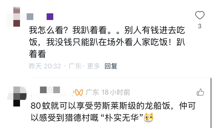 也就是说,80元的广州猎德龙船饭,不等于能和房东同桌,但也许你能撞到晚上在涌边遛弯的房东呢?有网友表示,正所谓“食过龙船饭,龙精又虎猛”。好不好吃是其次,意头好才是最重要的。