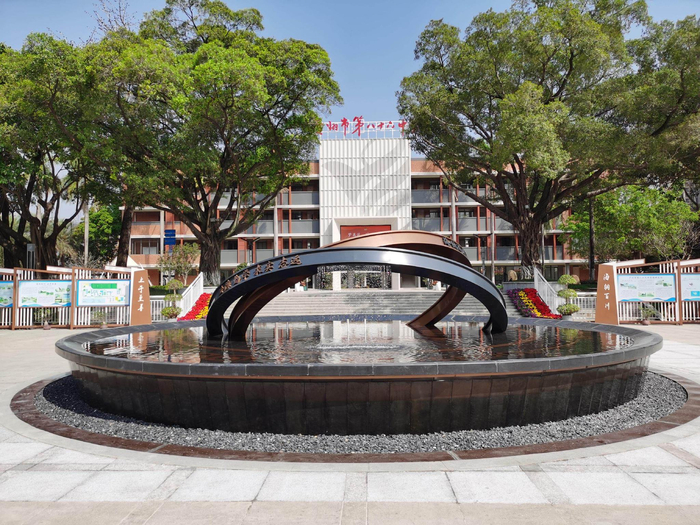 高品质的育人环境:徜徉林荫校道,新建的学校大门恢弘大气,时光之隙雕塑催人奋进,喷泉景观灵动唯美,似锦繁花浪漫满溢,魅力校园,如诗如画;邂逅课余生活,飞扬舞台歌声悠扬,舞步轻盈,钢琴角旋律流淌,随处可见的羽毛球场快乐飞扬,标准的运动场上活力绽放,青春校园,多姿多彩……