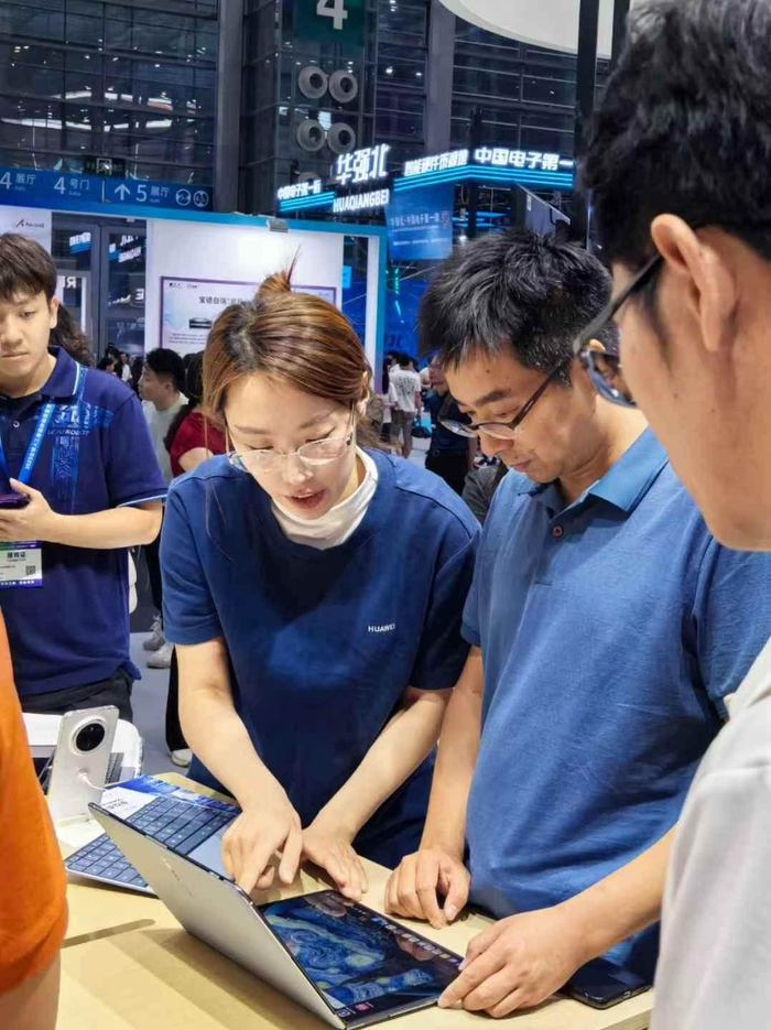 华为展区另一款HUAWEI MateBook Pro采用全新云隼架构,整机仅970克,兼具强劲性能、出色散热和长续航表现。融合小艺智慧键一键AI模式等多重创新科技,为用户带来焕然一新的笔记本体验。