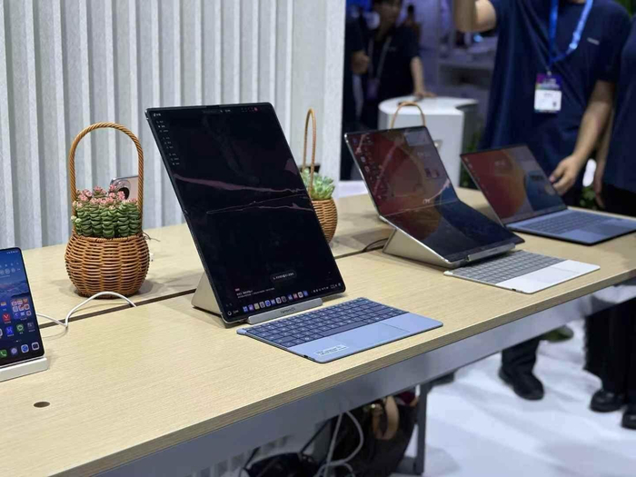 除了两款电脑新品,华为展区内还展出了多款经典产品,包括HUAWEI nova 14系列、HUAWEI Mate 70系列、HUAWEI Pura X以及HUAWEI Mate X6等,这些产品充分展现了华为在人工智能终端领域的强大实力和创新精神。
